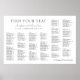 Med sin rena vita färg ger detta diagram en känsla av renhet och harmoni till din bröllopslokal. Den alfabetiska sorteringen av namn säkerställer att gästerna enkelt hittar sina tilldelade platser, vilket gör processen att hitta sin plats smidig och stressfri.