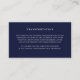Bröllop transport-kort med vit text på marin blå bakgrund. Minimalistisk, enkel elegant.