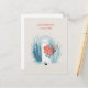 Söt vit mink/hermelin omgiven av blåa och orange blommor Tänker på dig-kort. Anpassa med ditt eget meddelande på framsidan och ändra din adress på baksidan.
