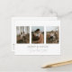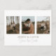 Meddela din speciella dag med det här moderna fotokollaget spara vykortet med tre romantiska foton som är snyggt inramade i vitt och överlagrade med fet datumtypografi. På framsidan finns ett känsligt skript "Save the Date" (Spara datum) och på den rena baksidan visas parets initialer bredvid en botanisk elegant. Den här utformningen blandar perfekt den rustiska charmen i bröllop med ett minimalistiskt stil och en neutralt-palett i färg, skapar det som ett ideal och enkelt att skicka meddelanden till bröllop. Ett sofistikerat val för par att fira kärlek med ett mjukt manus och högdagrar för personlig förlovning.