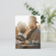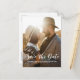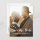 Spara datumet! Meddela din bröllop-dejt till familj och vänner med det här lodrät spara vykortet för datum. Den har vit modern kalligrafi med klassiskt typografiskt överlägg. Anpassa genom att lägga till information om namn, datum, plats, foto och andra bröllop. Spara datum meddelande är perfekt för alla bröllop-teman och årstider. Den här designen finns som ett platta kort, magnet och vykort.
