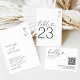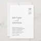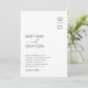 Minimala svarta & vita bröllopsinbjudningar med era initialer i det övre högra hörnet, en elegant modern textmall med era namn och bröllopsinformationen.