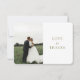 Modern och chic. Detta vackra bröllop tack-kort har ett par foto och en ren modern uppsättning samtida typsnitt. En frodig rosaccent ingår på baksidan mot en krispig vit bakgrund. Anpassa texten på baksidan eller lämna textrutan tom för att handskriva varje kort individuellt.