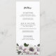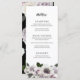 Gör din möhippa oförglömlig med menyn Vita Moody för Blommigt av Lila och Möhippa - ett chic, contemporary-menykort som anger tonen för en elegant firande. Det här menykortet är ett verkligt konstverk som har ett motiv för anemonblommigten i rikens skuggor av lila och svart. Det skapar omedelbart en atmosfär av romantik och sofistikering, vilket höjer hela möhippans upplevelse. Vita Moody Möhippan för Anemone & Lila Blommigt är perfekt för bruden som vill wow sina gäster med en snyggt, modern beröring. Anpassa den med din evenemangsinformation för att ge din vision liv och lämna ett bestående intryck på alla som är närvarande.