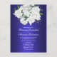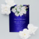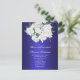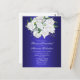 Just i elegant har det mörk blått bröllop-meddelandet en vacker möhippa av vit ros, accentuerad med känslig baby-andedräkt från kant. Den här charmerande postkortinbjudan med dess metallblått och blommigt-tema skulle vara en perfekt inbjudan till ett botaniskt temat eller trädgårdsbröllop, eller varje större händelse som hålls i en utomhusmiljö.