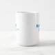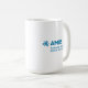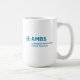 Vit mugg med blå AMBS-logotyp