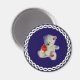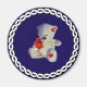 Vit Nalle, så söt, på marinblått färg, vit braindien ram.