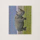 Vit noshörning och avlägsna mindre flamingor, pussel