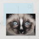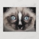 Med ett vykort som rymmer en vidsträckt, blå och brun kattunge, med en vit rand nedåt i näsan, tittar du med vitt, öppet ögon. Underbart kort för katt, kattunge och baby djur älskare. Foto taget i Pasadena, Kalifornien.