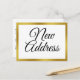 'Ny adress' visas i svart skrift på framsidan av denna flyttningsannons. På baksidan kan du anpassa ditt kort med din adressändring med ditt namn, nya adress, e-postadress och/eller mobilnummer. All text kan redigeras eller raderas.