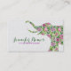 Vit och färgfull Retro-Blommigt Elephant Visitkort