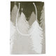 Paket din speciella julklapp i den här vackra presentväskan. Skapa en vacker julklapp till alla er kärlek. Den vita och grått snö-täckta julen mönster är mot en kritbakgrund, perfekt för personanpassning. Gnistran träd i mörken. Snovnatten är tyst och hånad. Använda den här designen för vinterbröllop, julklappar och alla dina helgdag i år. Koordinera med matchande presentpåsar och papper förpackning.