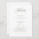 Dessa elegant, enkla välkomstprogram för vita bröllop har klassiskt och luxe sage grönt calligraphy för en tidslängd, finare-utseende.