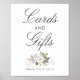Vit blommigt bröllop-skylt "Kort och gåvor"