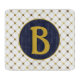 Elegant guld och vit geometrisk punkt och linjer rutnät mönster. Anpassa med centermonogram i guld på blå bakgrund.