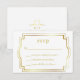 Vitt och guld RSVP-kort. Den falska guldpräglade ramen och bokstäverna gör detta till en elegant design som passar till alla inbjudningar
