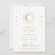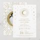 Vit och guldstjärnig himmelsk solburst måne bröllo inbjudningar