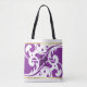 Vit och Lila, blommande Guld Gräns Monogram Tygkasse