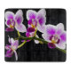 En häpnadsväckande vit och lila orkidé står på ett beundransvärt sätt ut mot en djup svart bakgrund, dess petaler visar en delikat blandning av färg som symboliserar elegans och stolthet. Denna exquisitblomma, som ofta förknippas med lyx och skönhet, fäster uppmärksamheten på sitt berikande mönster och sina livliga nyanser. Kontrasten mellan orkidéns levande färg och bakgrunden till mörken förstärker dess eterala allure och skapar det som en fängslande subjekt för både fotografer och botanister.