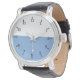 En klocka är inte bara en tidspunkt. Du kommer att bära den här klassiska klockan med ett läderband och vit och ljusblå ansikte.