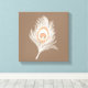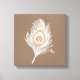 Vit och persiko Peacock Feather på Taupe Tan Canvastryck