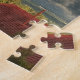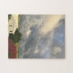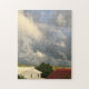 Vit och röd hus siluett med dramatisk himmel pussel