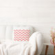 Fyllig soffkudde med vit och rosa röd pastellfärgad sicksack-mönsterdesign. Lägg till en mjuk touch i ditt vardagsrum.