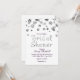 Vit och silverglittrande bröllopsdusch-inbjudan.