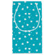 Här har vi en underbar presentsäck med vita hjärtan på en turkobakgrund. Den här väskan blir ett fantastiskt tillskott till en gåva till dina vänner och familj.