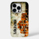 Monogram Personalize med eget namn. Anpassa med din anpassningsbar till början och namn. Coolans unika gåva för manar som arbetar i byggnadsverk, murverk, ingenjör, byggare.. PLdesign-foto av en förstörd tegelvägg gammal övergiven stonewall i orange, vitt och svart.