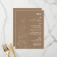 En dramatisk sandbrun bakgrund blandas med en modern blomstam i eleganten på den vita menyn för bröllopsmottagning. Modern typografi typsnitt kompletterar den mjuka blommans utformning och kompletterar sökandet efter alla former av mottagning av tropiska komplikationer. ENKELT PERSONALISERA för att passa dina behov.
