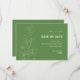 Ett tropiskt popo av grönt blandas med en elegant modernt blomstam i detta Vita Orchid Destination Wedding Save the Date. Modern typografi i typsnitt kompletterar den mjuka blommans utformning och kompletterar sökandet efter eventuella tropiska luxhändelser. Håll dig till det moderna temat, spara pengar och tid med OSA + detaljinformation tryckt på baksidan. Perfekt som ett tryckt kort, men öga-hämtning och lätt som digital nedladdning. ENKELT PERSONALISERA för att passa dina behov.