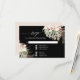 Vit orkidé Tropiskt blad Rodnad Svart Blommig RSVP-svarskort för att samordna med hela vår bröllopsinbjudan. Modern, djärv svart bakgrund är både elegant och stämningsfull när den kombineras med handmålade rodnad, grå och gröna akvarellbilder i en boho-stil blomster med torkad djungelfoliage och palmkvistar för ett strandtematiserat, tropiskt eller kustnära bröllop. Upphovsrätt, Internationellt känd och licensierad konstnär, Audrey Jeanne Roberts.
