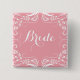 Knappen Bride. Elegant vit vintage blommigt snöre roterar ram över bakgrunden för pastellrosa som du kan ändra på webbplatsen. Om du behöver hjälp med att anpassa någon av mina designers kontaktar du ArtOnWear-designern. Kostnadsfri textformatering med hjälp av direkthjälp tillgänglig på begäran.