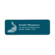 Vit Peacock på Teal Fold Snyggt Art Deco Design Returadress Etikett