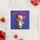 En papper napkin med vit persisk katt och röd ros och ord "Grattis på födelsedagen".
