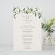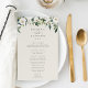 Vår samling för bröllop med vita pioner i vattenfärg presenterar delikat målade gröna växter i vattenfärg, gröna botaniska blad och vita och elfenbensvita pionblommor. Anpassa dessa eleganta menyer för bröllopsmiddagen med dina menyval och era namn högst upp.