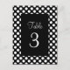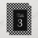 Vit polka mönster på svart med plats för ett bordsnummer. Du kan anpassa och radera "Bord" i ord och centrera numret.