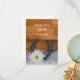 Skicka ett varmt meddelande om tacksamhet och tacksamhet efter din avslappnade lada-fest bröllopsfest eller bröllopsceremoni och mottagning med White Daisy och Horseshoe Western Wedding Flat Thank You Note. Dessa avslappnade men ändå klassiska anpassade countrystil-fulla bröllopskort med lantlig charm har ett pittoreskt blommotiv med en vit tusenskönas blomning, rostig hästsko, pärlhalsband och en vit brudslöja och en rustik väderbiten brun lada-trä bakgrund. Perfekt inspiration för en cowgirl-brud.