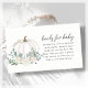 Vi presenterar våra Bok-visitkort - perfekten som tillägg till din falltematiska babydusch! Med en fin vattenfärgsvit pumpkin med botaniskt löv på en mjuk vit bakgrund. Med ett skriftligt förhandsmeddelande som är helt anpassade gör dessa kort det enkelt för dina gäster att komma med en speciell beröring till baby bibliotek. Lägg bara till ditt personlig och voila! Dina gäster vet exakt vad de ska göra.