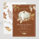 Vita Pumpkin-inbjudningar för Höst löv Thanksgiving - elegant vattenfärgen lämnar i rost, guld och bronze med en vit vattenfärgspumpa.