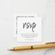 Letar du efter det perfekta svarsbrevet för din bröllopsinbjudan? Sök inte längre! Vårt kompakta, anpassningsbara moderna bröllopssvarskort har en snygg svart scripttypografi som säkert kommer att imponera på dina gäster. Med en ren vit bakgrund kan du enkelt lägga till din egen anpassade text för att göra det unikt. På baksidan kan du skapa en ny QR-kod som länkar direkt till din bröllopswebbplats för enkel åtkomst och bekvämlighet. Gå till alternativet "anpassa", lägg till din bröllopswebbadress i det angivna området, så genereras en QR-kod på designen just för dig. Beställ nu och låt svarsmeddelandena börja rulla in!