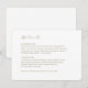 Modern, chic och enkel.. De här detaljkorten i bröllop innehåller en bröllop-detaljtext, QR-kod för webbplats och en contemporary av typsnitt på oliv grönt, mot en skarp vit bakgrund, både bakifrån och framifrån.