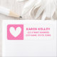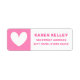 Returetiketter med ett sött hjärta i rosa bakgrund och ditt namn och adress i ett fet, rosa teckensnitt. Typsnitt och färg kan anpassas med verktyg.