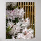 Vit Rhododendron Blooms och Bamboo Fence Blommigt Poster