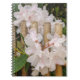 En bärbar dator med spiral-format för anteckningar och journalföring som innehåller en förslutningsbild av vita rododendron-blommor och bambofencing. En underbar, blommigt design!