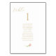 Elegant, färsk och modern. Det här enkla bordsnumret med gästlista och elegant har en vit linje som dras rosa ros och en contemporary typsnitt i ett faux guld mot en skarp vit bakgrund. Den främre konstruktionen upprepas längst bak för att få bättre synlighet i bord. Du kan också montera kortuppsättningen tillsammans på ett visning board. Denna utformning omfattar 10 namn, men 12 namn (max) passar fortfarande.