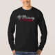 Den svart långärmadskjortan med av gudom och mänsklighet skrivev ut på bekläda.