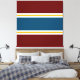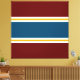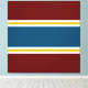 Den här sportiska, atletiska designen har ett stort havsblått centrum rand med dubbla vit och gult tävla ränder mot djupa röda yttre ränder i kant.