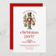 Jultematerad jul party inbjudan med julklackare och rödretrotypografi. Vit bakgrund.